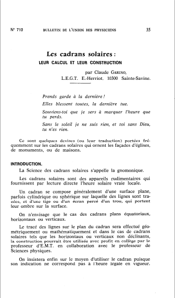 Les cadrans solaires : leur calcul et leur construction. Bull. Un. Prof. Phys. Chim., 83(710): 35-68 1989 udppc.asso.fr |