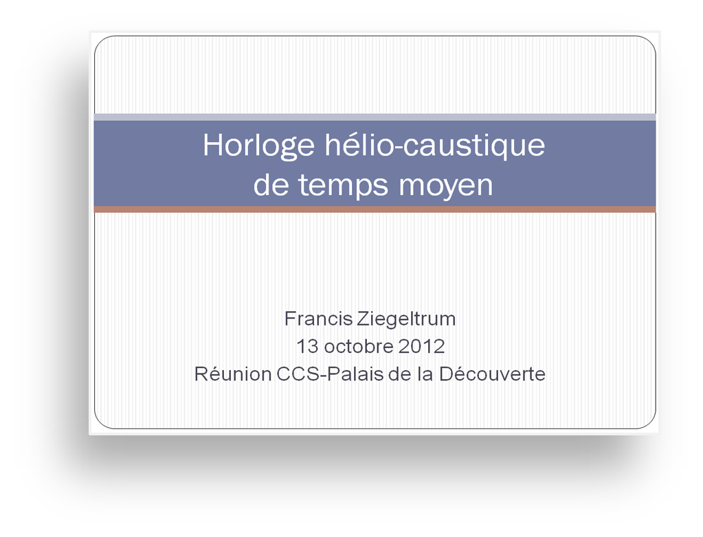 Quelques gnomonistes contemporains ont réalisés des horloges hélio-caustiques en utilisant la pointe de la caustique pour indiquer l’heure solaire ou même l’heure légale sur des écrans incurvés. Mais aucun n’a eu l’idée de se servir de la partie centrale de la caustique appelée nappe sagittale qui rend alors possible l’utilisation d’un écran plat portant les courbes en huit.