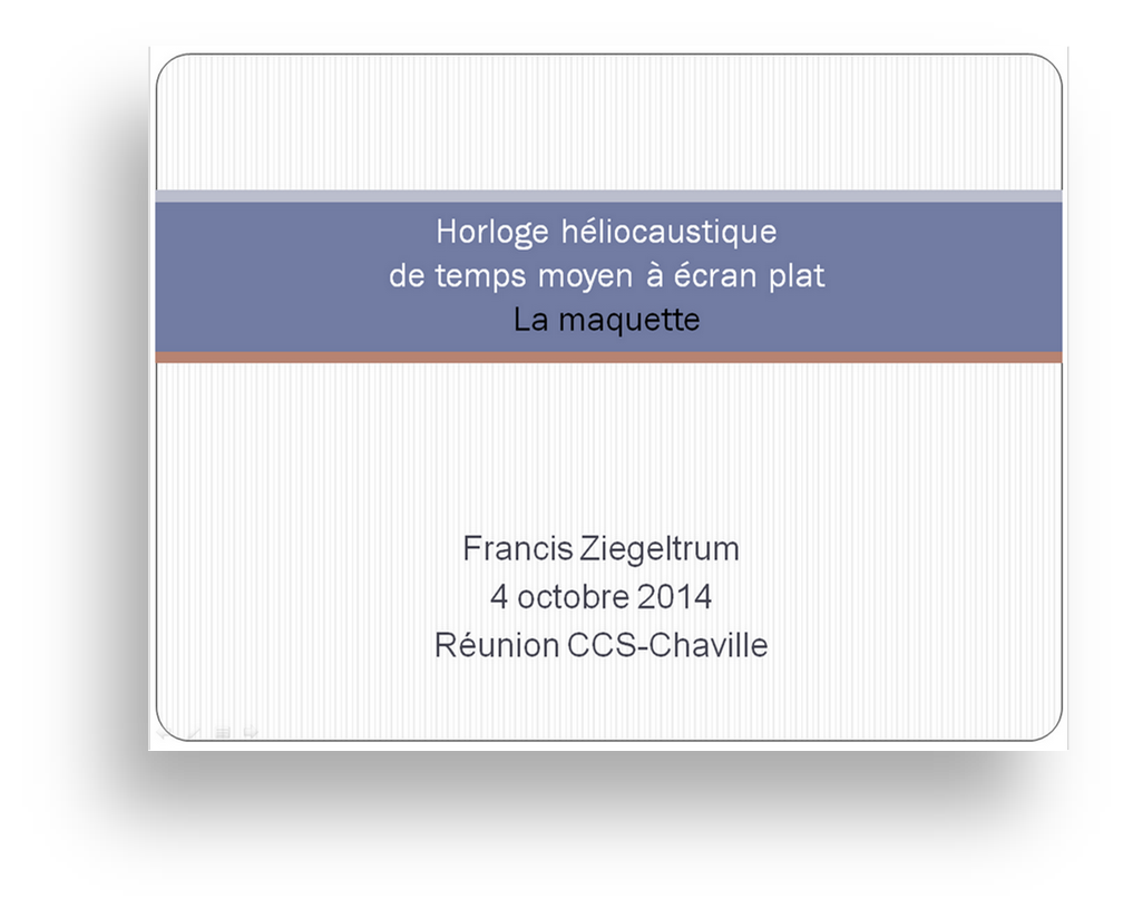 L’horloge hélio-caustique de temps moyen à écran plat existe maintenant dans sa forme théorique mais sa mise en pratique nécessite l’utilisation de verre résistant à 800°C, matériau difficile à trouver dans le commerce.