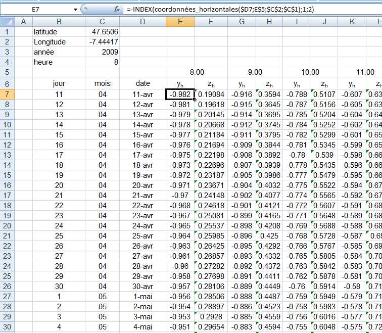 1. Méthode de calcul Il s’agit, en partant des formules issues de la mécanique céleste, de positionner la Terre sur son orbite autour du Soleil, puis, par une série de changements de repère, de passer du centre de l’ellipse au lieu d’observation.